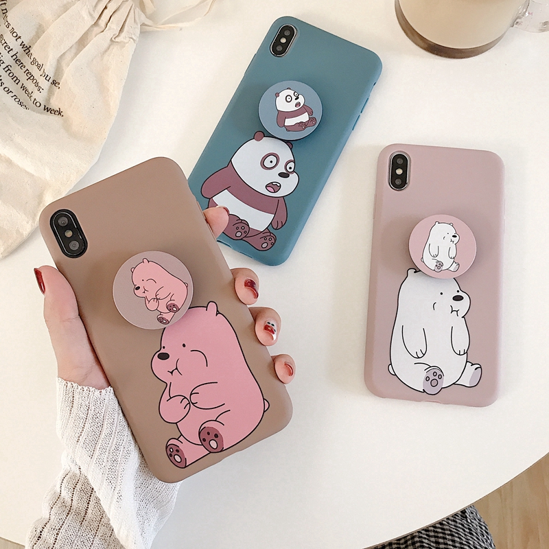 Iphone X Xs Max Xr 6 6s 7 8 Plus Case Cute Soft Silicon Tpu Bare Bears Phone Cover Airbag Bracket Shopee Singapore